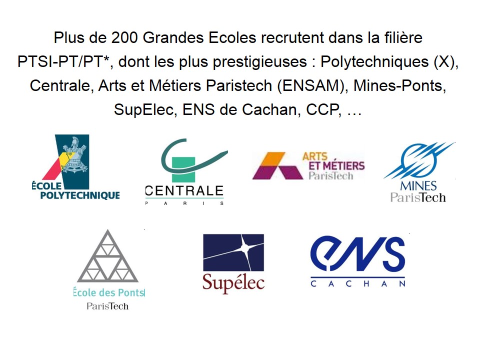 •  Les écoles les plus prestigieuses recrutent sur la prépa PTSI-PT/PT*, ainsi vous disposez chaque année de plus en plus de places aux concours et donc de nouvelles chances d’intégrer une grande Ecole.