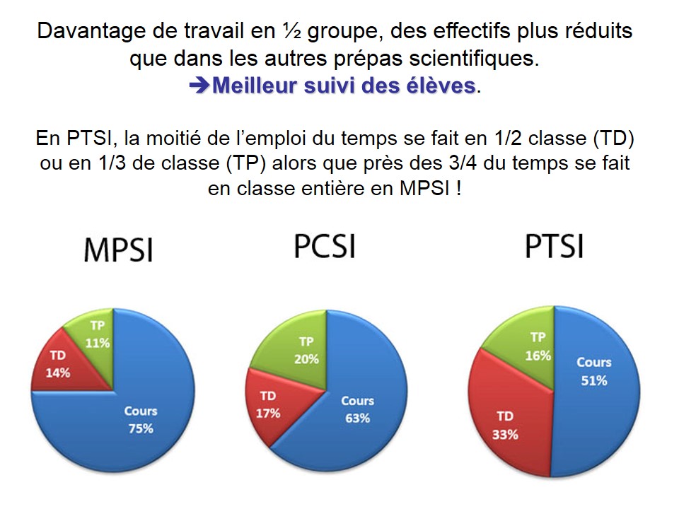 •  Davantage de travail en ½ groupe, des effectifs plus réduits que dans les autres prépas scientifiques.