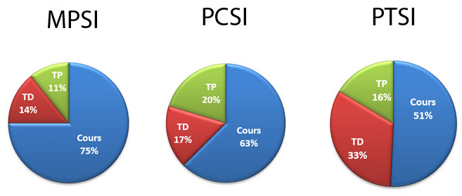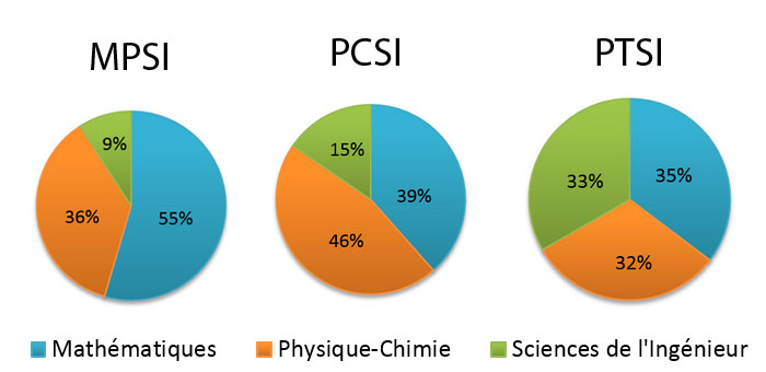 La filière PTSI propose 4 grands pôles d’enseignement d’égale importance lors des concours :