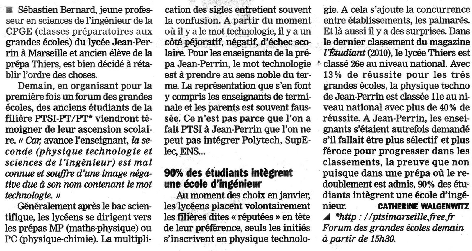 A certaines occasions, la presse locale couvre divers événement de la prépa PTSI-PT/PT* du lycée Jean PERRIN.