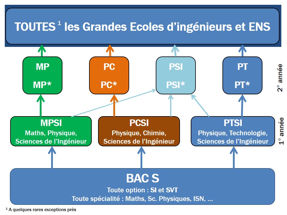 De nombreuses Grandes Ecoles (Polytechnique X, Centrale, ENS Cachan, Mines-Ponts, Arts et Métiers Paritech (ENSAM), SupElec, CCP, ...(presque toutes)) recrutent dans la filière PTSI-PT/PT*.