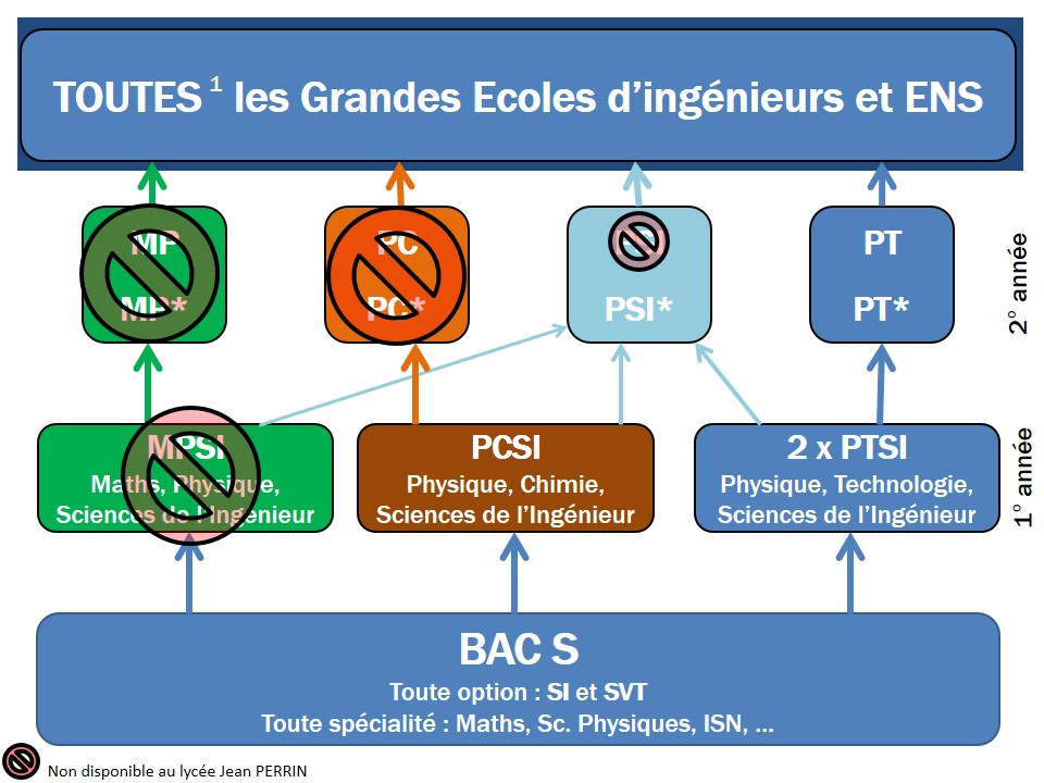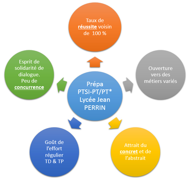 Le lycée Jean PERRIN propose 2 classes de 1° année PTSI et 2 classes de 2°année : 1 PT* et 1 PT.