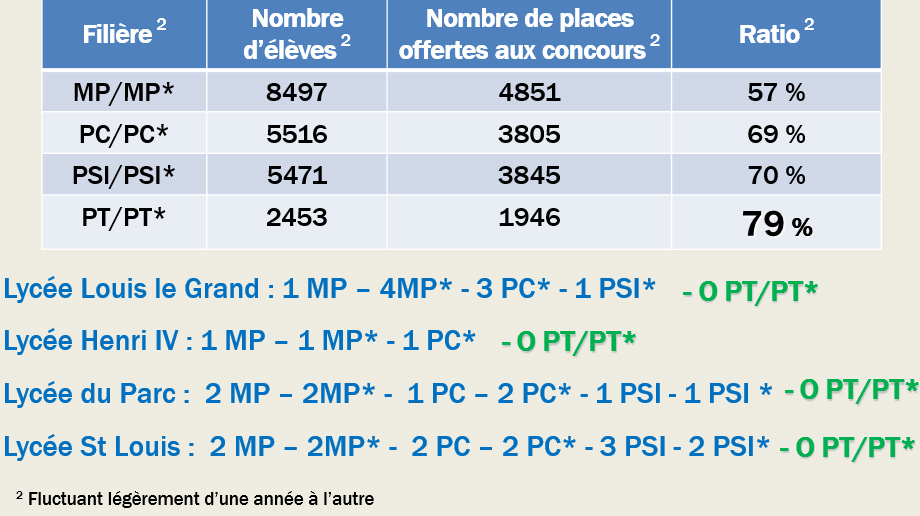 En choisissant la filière PTSI/PT, vous avez le meilleur ratio nombre de candidats / nombre de places offertes aux concours.